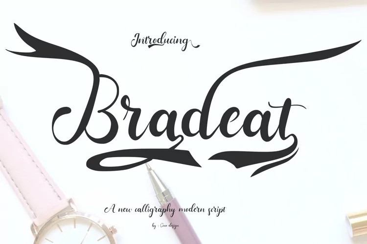 Bradeat Script Font by cocodesign 11,151 downloads Found in: Calligraphy Fonts, Script Fonts Bradeat Script Font