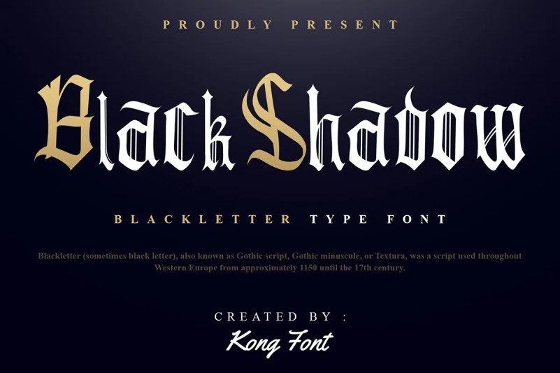 Blackshadow Blackletter Font by Kong Font 19,574 downloads Found in: Blackletter / Gothic Fonts Blackshadow Blackletter Font