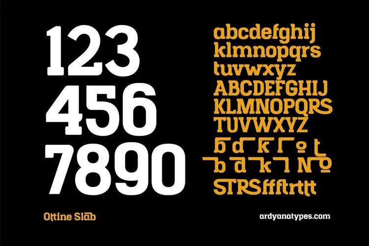 Ottine Slab Typeface by Ardyanatypes 21,609 downloads Found in: Slab Serif Fonts, Style / Aesthetic Fonts Ottine Slab Typeface