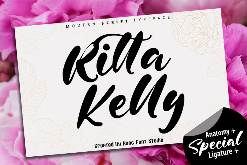 Ritta Kelly Script Font by @font_kong 7,476 downloads Found in: Calligraphy Fonts, Script Fonts Ritta Kelly Script Font