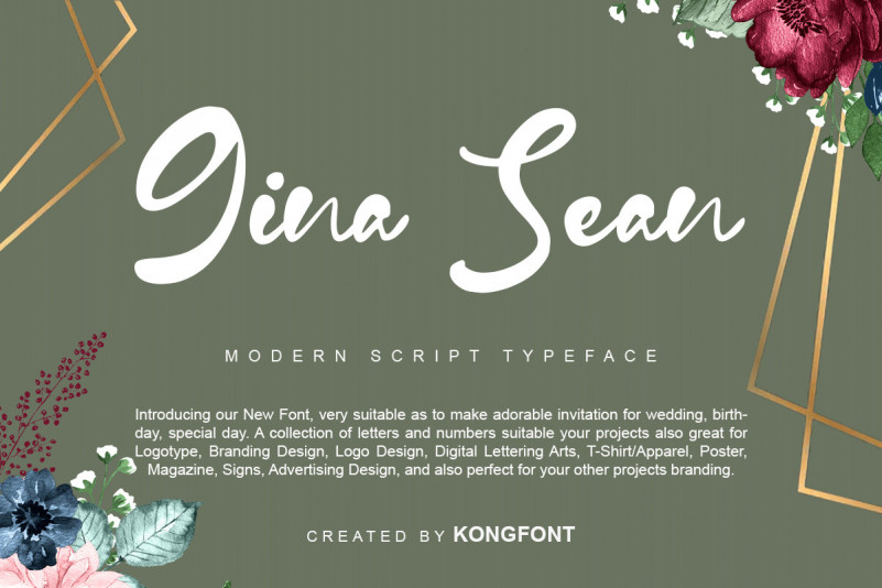 Gina Sean Script Font by @font_kong 10,620 downloads Found in: Calligraphy Fonts, Script Fonts Gina Sean Script Font