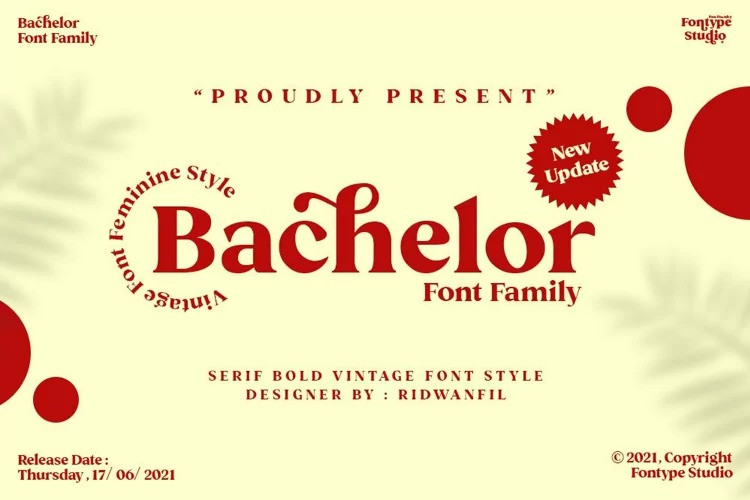 Bachelor Serif Font by Ridtype 18,002 downloads Found in: Serif Fonts, Style / Aesthetic Fonts Bachelor Serif Font