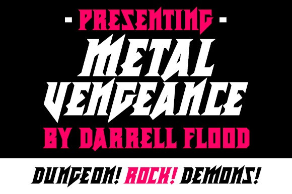 Metal Vengeance Display Font by Darrell Flood 11,069 downloads Found in: Display Fonts, Stencil Fonts, Techno / Futuristic Fonts Metal Vengeance Display Font