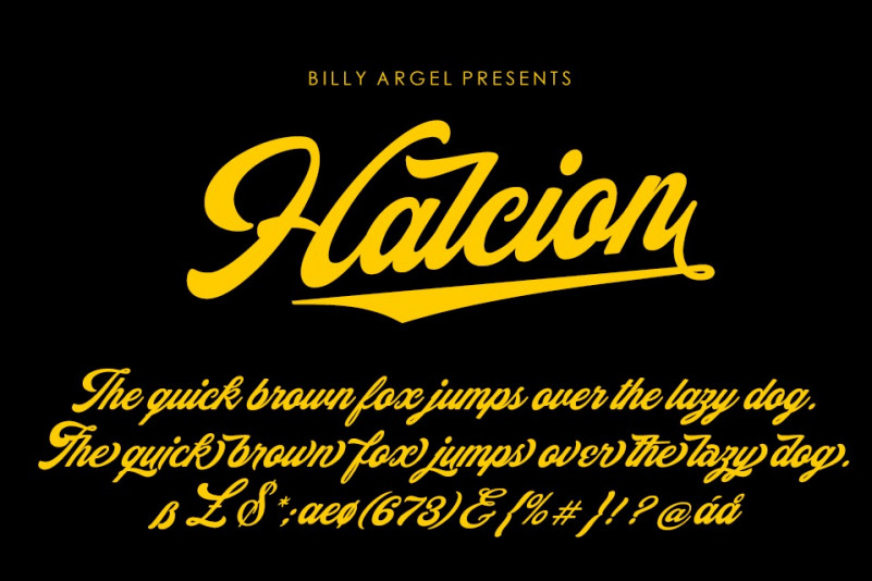 HALCION Script Font by Billy Argel 11,314 downloads Found in: Retro / Vintage Fonts, Script Fonts HALCION Script Font