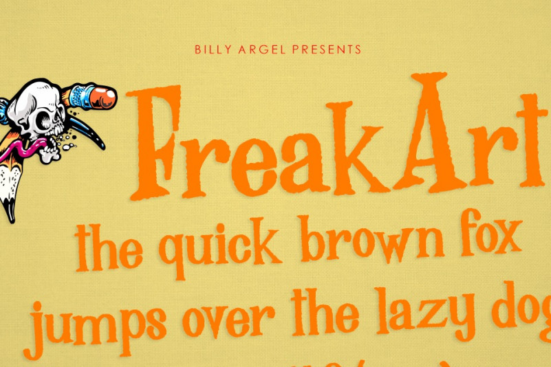 Freak Art Display Font by Billy Argel 20,142 downloads Found in: Decorative Fonts, Display Fonts, Retro / Vintage Fonts Freak Art Display Font