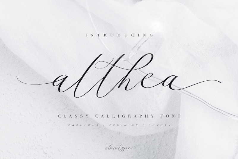 Althea Calligraphy Font by Chocotype 25,244 downloads Found in: Calligraphy Fonts, Script Fonts Althea Calligraphy Font
