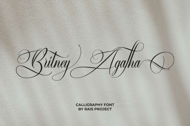 Britney Agatha Calligraphy Font by RaisProject 10,038 downloads Found in: Calligraphy Fonts, Script Fonts Britney Agatha Calligraph...