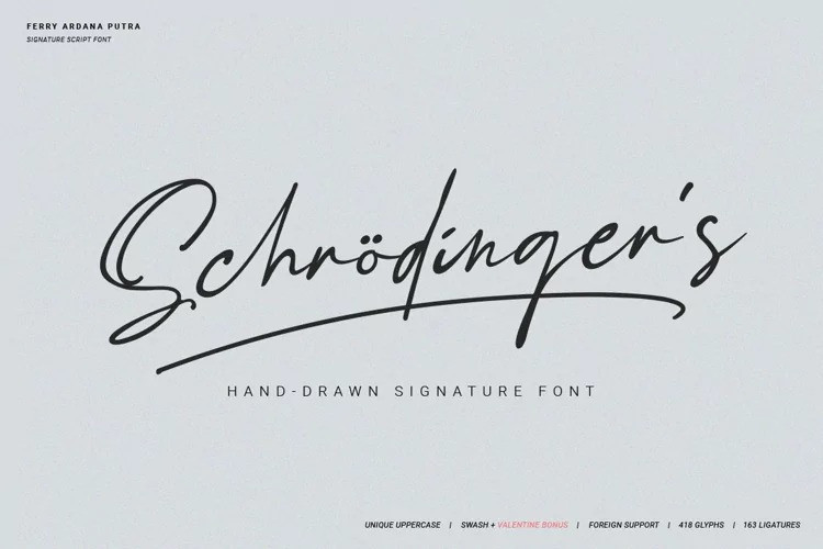 Schrodingers Script Font by Ferry Ardana Putra 16,401 downloads Found in: Handwritten Fonts, Script Fonts Schrodingers Script Font