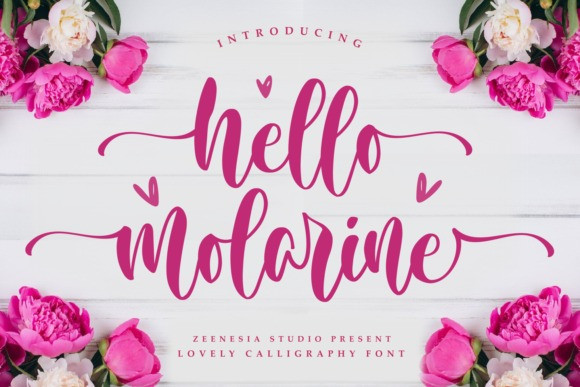 Hello Molarine Calligraphy Font by Zeenesia Studio 10,601 downloads Found in: Calligraphy Fonts, Script Fonts Hello Molarine Calligraph...