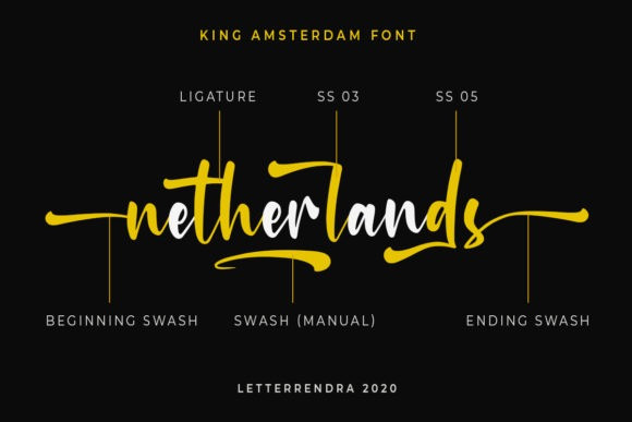 King Amsterdam Script Font by Letterrendra 11,851 downloads Found in: Brush Fonts, Script Fonts King Amsterdam Script Font
