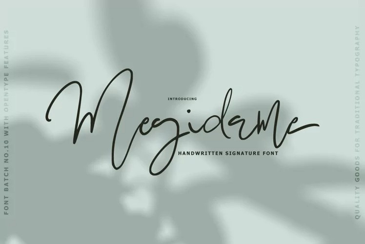Megidame Signature Script Font by Tebaltipis Studio 13,102 downloads Found in: Handwritten Fonts, Script Fonts Megidame Signature Script Font