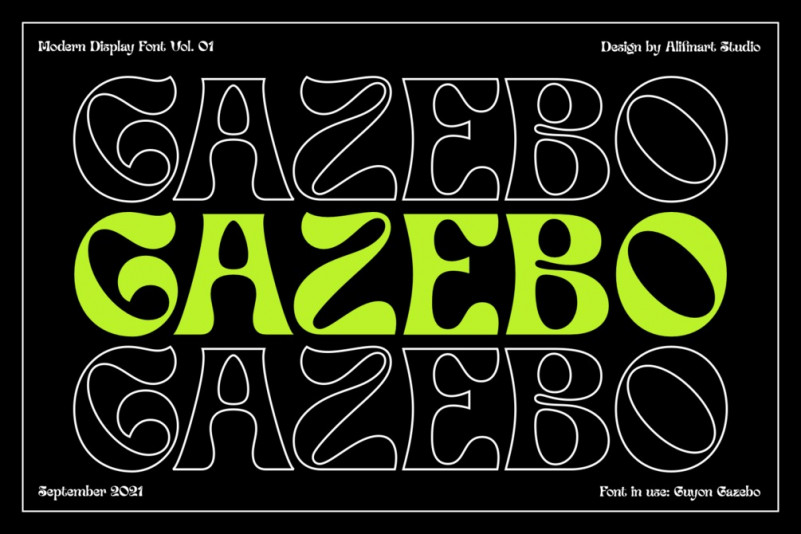 Guyon Gazebo Display Font by Alifinart Studio 12,705 downloads Found in: Display Fonts, Retro / Vintage Fonts Guyon Gazebo Display Font