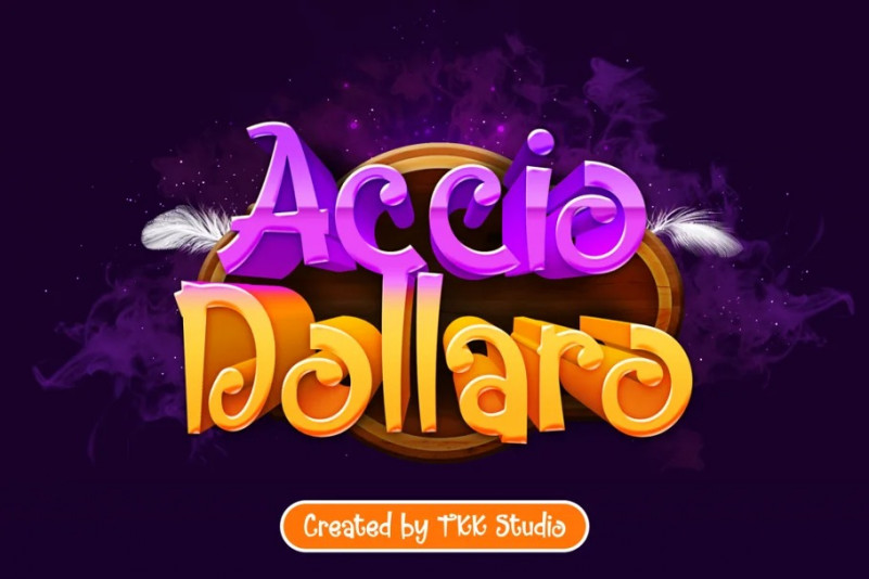 Accio Dollaro Display Font by Tokokoo Studio 12,788 downloads Found in: 3D Fonts, Display Fonts, Playful / Fun Fonts Accio Dollaro Display Font