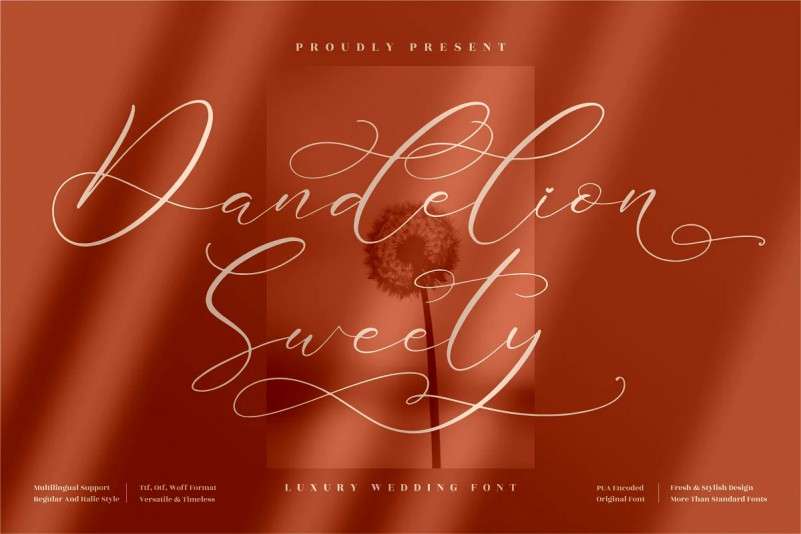 Dandelion Sweety Script Font by Perspectype Studio 8,384 downloads Found in: Calligraphy Fonts, Script Fonts Dandelion Sweety Script Font