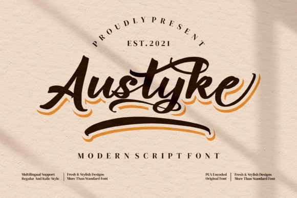 Austyke Script Font by Integritype Studio 9,874 downloads Found in: Brush Fonts, Script Fonts Austyke Script Font