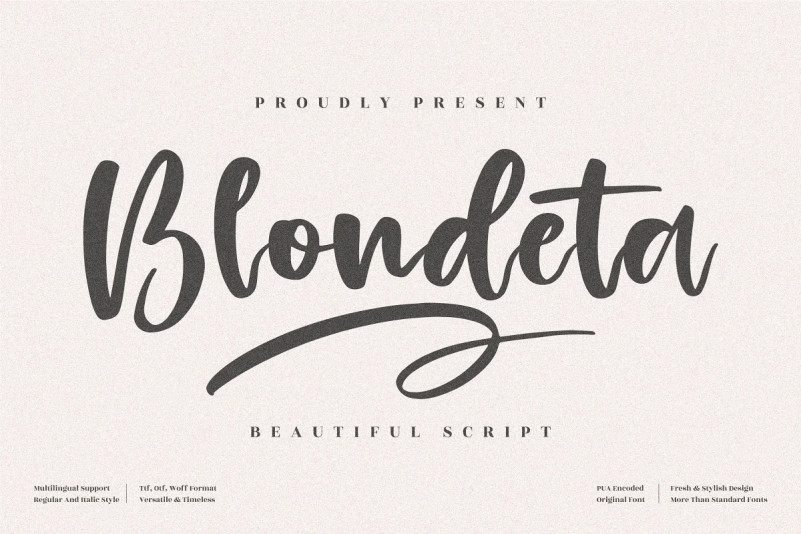 Blondeta Script Font by Perspectype Studio 14,869 downloads Found in: Brush Fonts, Script Fonts Blondeta Script Font