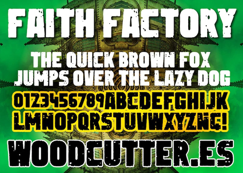 Faith Factory Display Font by Woodcutter 9,290 downloads Found in: Display Fonts, Retro / Vintage Fonts Faith Factory Display Font