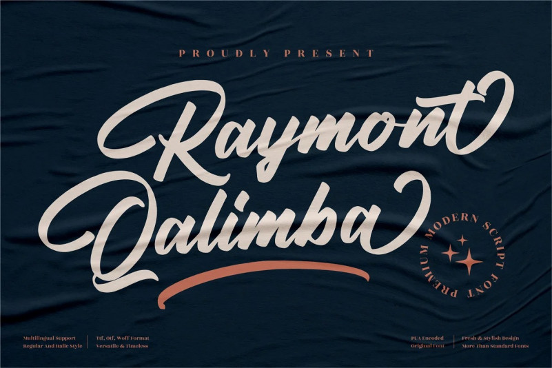 Raymont Qalimba Script Font by Perspectype Studio 14,160 downloads Found in: Brush Fonts, Calligraphy Fonts, Script Fonts Raymont Qalimba Script Font