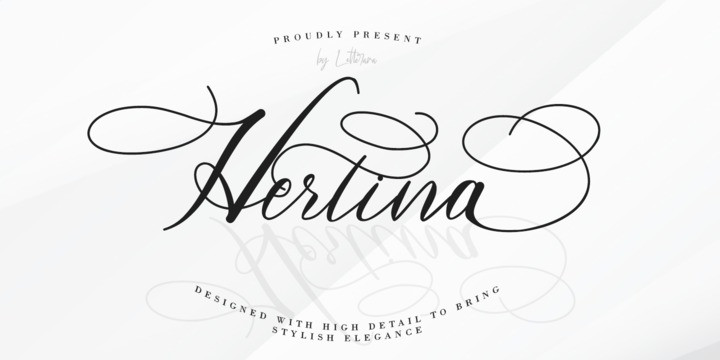 Hertina Script Font by letterara 14,639 downloads Found in: Calligraphy Fonts, Script Fonts Hertina Script Font