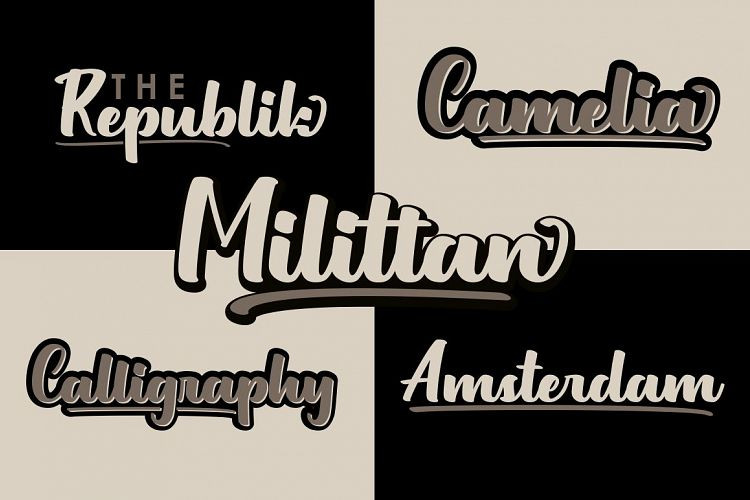 Milittan Script Font by Ditoollis Project 11,029 downloads Found in: Handwritten Fonts, Script Fonts Milittan Script Font