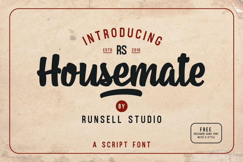 Housemate Vintage Script Font by Runsell Studio 15,073 downloads Found in: Brush Fonts, Script Fonts Housemate Vintage Script Font