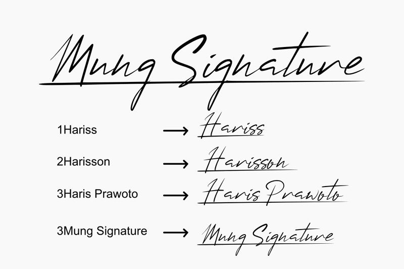 Mung Signature Font by Haris Prawoto 21,302 downloads Found in: Handwritten Fonts, Script Fonts Mung Signature Font