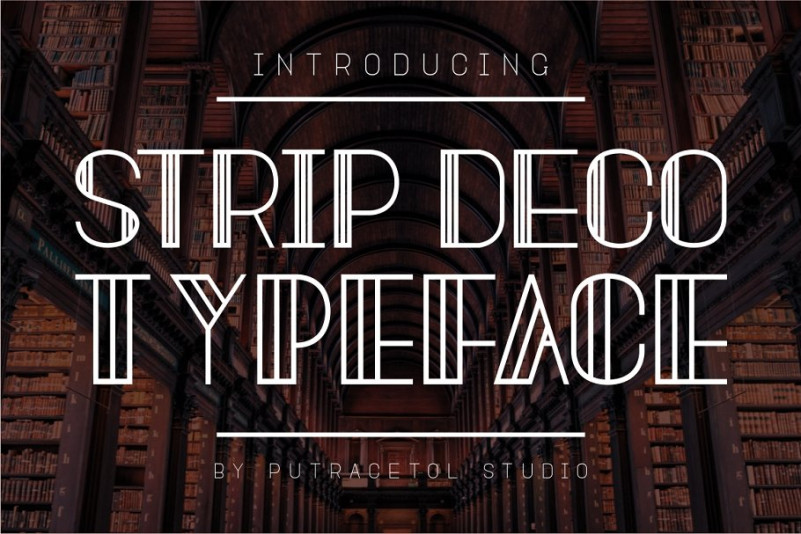 Strip Deco Typeface by PutraCetol Studio 13,608 downloads Found in: Decorative Fonts, Display Fonts, Sans Serif Fonts Strip Deco Typeface