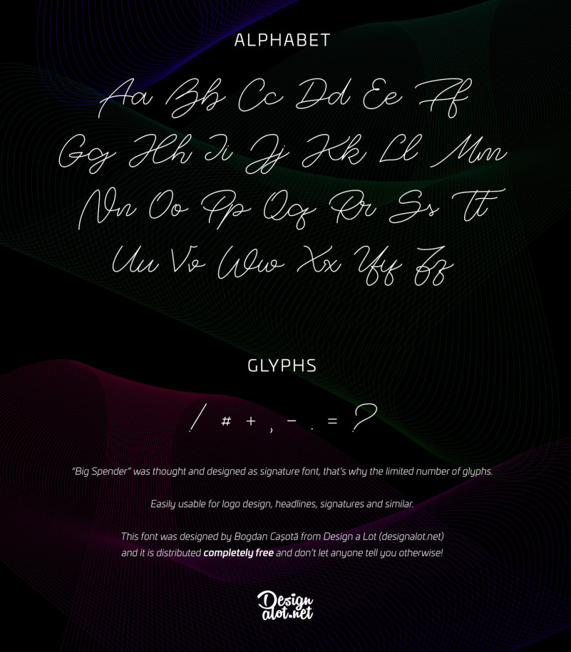 Big Spender Signature Font by Bogdan Cașotă 23,760 downloads Found in: Handwritten Fonts, Script Fonts Big Spender Signature Font