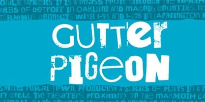Gutter Pigeon Font by PizzaDude.dk 13,494 downloads Found in: Display Fonts, Playful / Fun Fonts, Various Fonts Gutter Pigeon Font