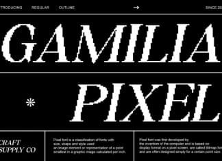 Gamilia Pixel Font by Craft Supply Co. 6,638 downloads Found in: Bitmap Pixel Fonts, Display Fonts, Serif Fonts Gamilia Pixel Font