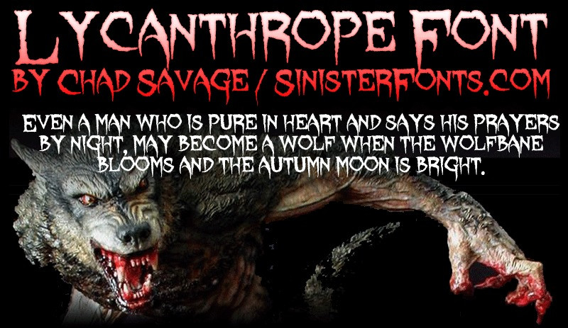 Lycanthrope Display Font by Sinister Fonts 12,730 downloads Found in: Display Fonts Lycanthrope Display Font