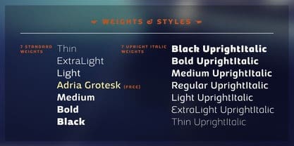 Adria Grotesk Font Family by Marcus Sterz 14,561 downloads Found in: Sans Serif Fonts, Style / Aesthetic Fonts Adria Grotesk Font Family