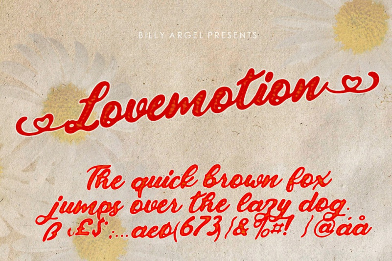 Lovemotion Script Font by Billy Argel 9,941 downloads Found in: Script Fonts, Various Fonts Lovemotion Script Font