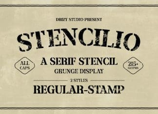 Stencilio Font by Drizy 9,033 downloads Found in: Display Fonts, Retro / Vintage Fonts, Serif Fonts Stencilio Font