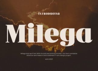 Milega Font by machintostemplate 14,076 downloads Found in: Retro / Vintage Fonts, Serif Fonts Milega Font
