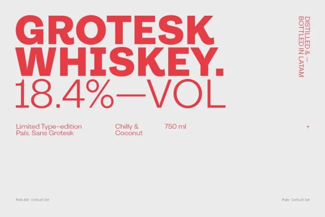 The “País Alt” version has more expressive and modern characters, with some giving it a much more playful image. It is ideal for logos, packaging, web and television use.