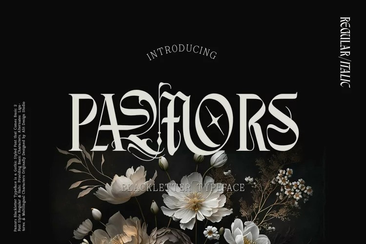 Pamors Font is a bold and daring blackletter font that exudes a sense of strength and power. The mix of regular and italic styles provides versatility, making it suitable for a wide range of design applications. With 799 characters, Pamors typeface offers extensive multilingual support and includes PUA unicode for easy access to special characters.