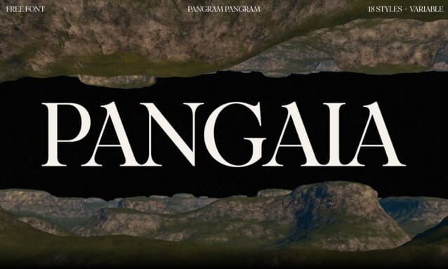 Pangaia Font – a typeface seamlessly blending the splendour of traditional serif fonts with the rough, raw, organic beauty of Mother Nature. Drawing directly from the wonder of the Earth and its flora and fauna, Pangaia’s fluid curves inhabit the gentle contours of leaves, riverbanks, and mountain slopes – capturing the joyful, harmonious connection between type, texture and terra firma.