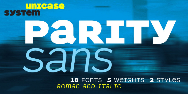 Parity Sans Font is a display sans font family designed by Nick Shinn, . This typeface has eighteen styles and was published by Shinntype.