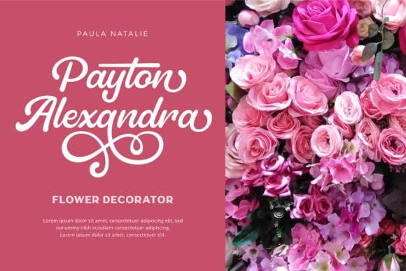 Paula Natalie Font is a cute and playful script font. This font was created to give your headlines and logotype projects a cheerful touch. Paula Natalie font is also usable in a wide range of works such as logos, covers, posters, quotes, product packaging, merchandise, social media and much more!