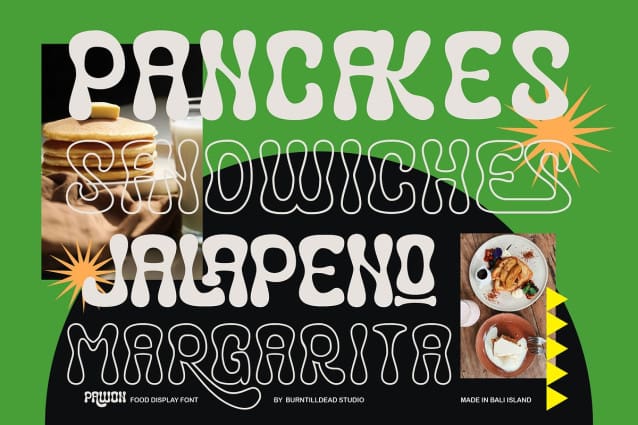 Pawon Display Font, a fresh, bold and playful food font, perfect for food branding, restaurant menus, food packaging, and culinary design projects. Its smooth, wavy letterforms bring a lively and inviting feel, making your design look delicious and eye-catching. Designed for food-related businesses, cafes, bakeries, and organic product branding, Pawon Display comes in three styles: Regular, Outline, and Oblique. Whether you’re creating a logo, menu, social media content, or food advertisements, Pawon adds a tasty and fresh touch to your designs.