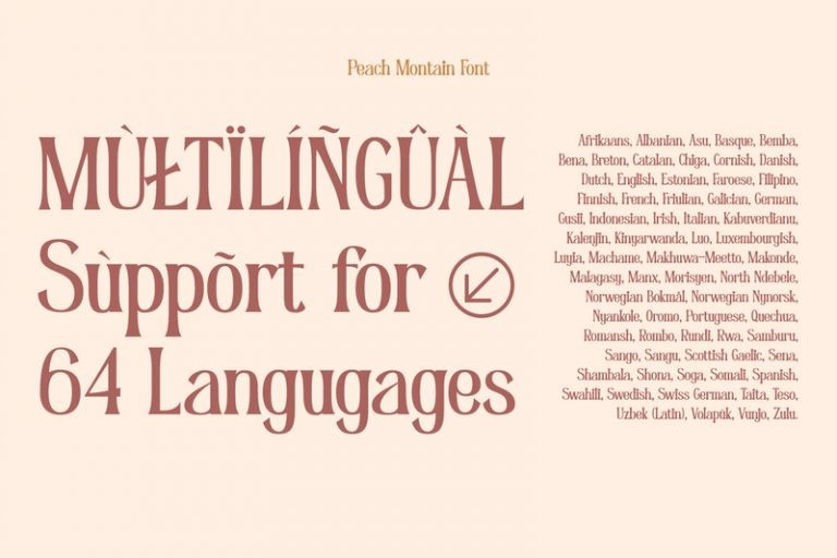 Peach Mountain Serif Font is an elegant, modern, multipurpose display serif font needed by designers today. The simple letters’ morphology has relatively similar proportions. Furthermore, its high contrasts and wide spaces are truly legible with which you can apply for any text sizes. In addition, you can make use of this font’s available interesting features to beautify your designs.