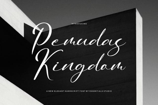 Pemudas Kingdom Font, a captivating script font meticulously crafted by Essentials Studio. With its airy sophistication and artful design, it’s an ideal choice for wedding invitations, serene craft designs, compelling banner creation, or eye-catching branding opportunities. Regardless of the background, Pemudas Kingdom makes an indelible impression with its seamless blend of classic grace and contemporary style.