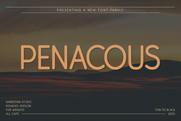 Penacous Rounded Font Family is a modern all-caps sans serif font family designed to bring clarity, warmth, and bold personality to your creative projects. With its soft-rounded edges and sleek, geometric construction, this font is both highly legible and aesthetically balanced across five versatile weights: Thin, Light, Regular, Bold, and Black.