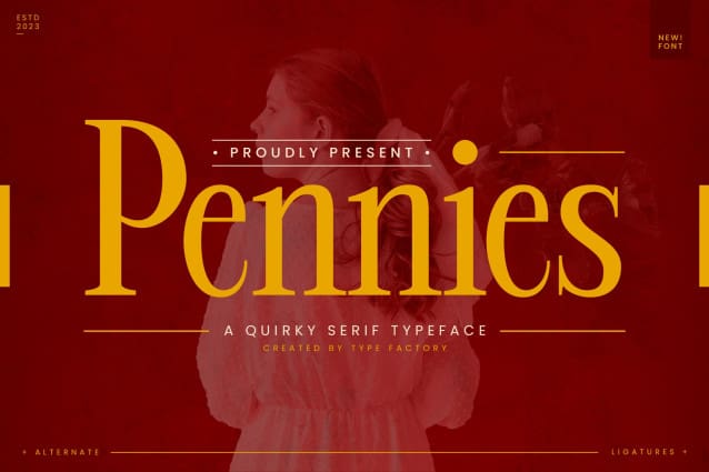 This font is free for personal use only. Purchase the Full Version here: https://elements.envato.com/fr/pennies-quirky-serif-typeface-6BGVTN5