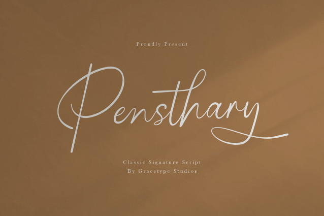 Pensthary Handwriting Font | Classic Signature Script, from Gracetypestudio, suitable for any projects such as: logos, branding projects, homeware designs, product packaging, mugs, quotes, posters, shopping bags, t-shirts, book covers, name card, invitation cards, greeting cards, label, photography, watermark, special events, and all your other lovely projects that need a Script taste.