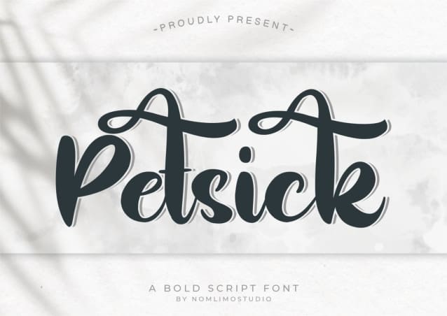 Petsick Script Font, a bold and stylish script font that adds a touch of elegance to your design projects. Whether it’s posters, magazine covers, t-shirt designs, flyers, or logotypes, Petsick is the perfect choice. Let this versatile font elevate your designs and make a lasting impression.