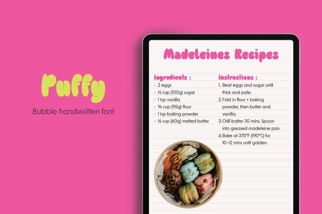 PGR Puffy Font, bubbly font that’s as fluffy as a cloud! With its rounded, thick letters, Puffy is the perfect choice for adding a touch of playful and fun to your designs