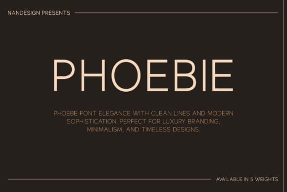 Phoebie Font Family a meticulously crafted sans-serif font family that redefines modern design. Featuring 5 distinct weights, it offers unparalleled versatility, seamlessly adapting to projects ranging from magazines and logos to film posters and beyond. Designed with precision and an eye for detail, PhoebieFont strikes the perfect balance between sophistication and simplicity, allowing your creations to exude timeless charm and contemporary luxury.