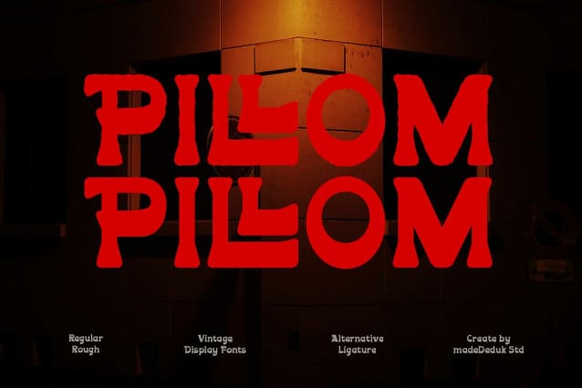 This font is used only for demos (Demo license). If you want to use this font for commercial use please contact: https://creativemarket.com/madeDeduk/286136352-Pillom-Vintage-Font?u=fontlot123